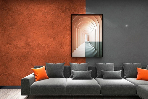 天然居艾草健康植物漆的這款背景墻,選用亮眼的橙色作為空間的點綴,一個充滿活力和激情的顏色。這一抹橙色,給暗淡的空間帶來明快,給沉重加入希望,給粗糙帶來細膩,一切壓力隨橙色的燃燒而釋放瓦解,讓心情隨之雀悅。