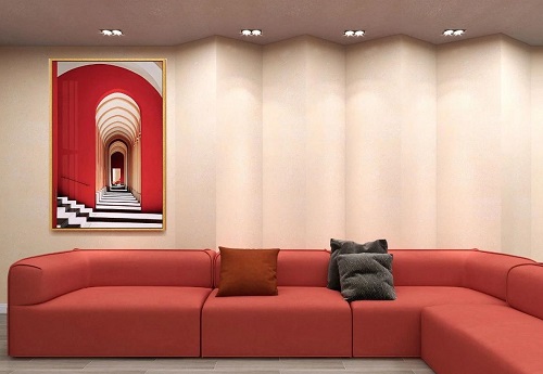 年輕人的裝修更多的是追尋大膽的色彩搭配以此來彰顯其個性。這款背景墻則采用了米色與紅色的搭配,十分簡潔的設計,卻帶來了特別高級的視覺效果!