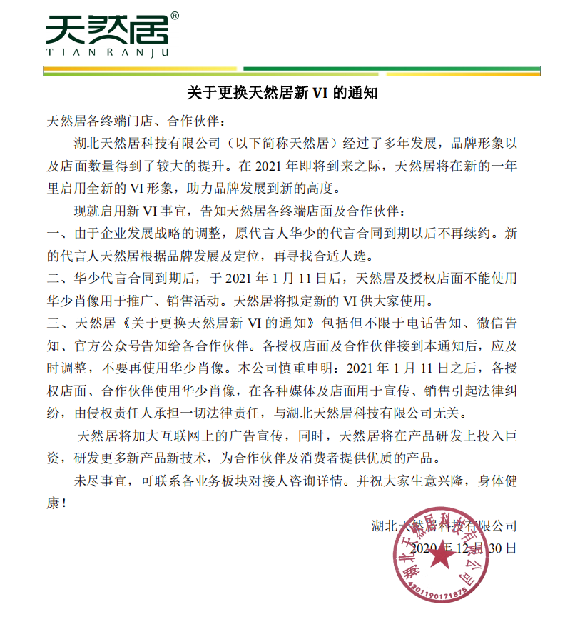 關(guān)于更換天然居新VI的通知