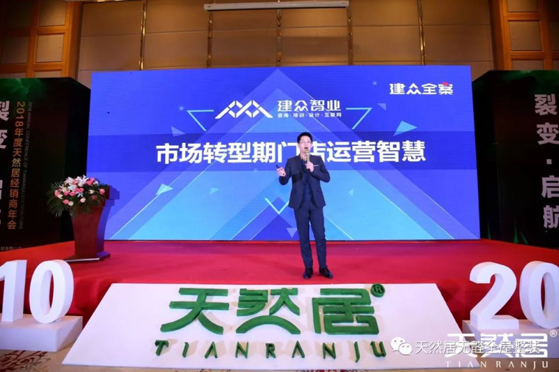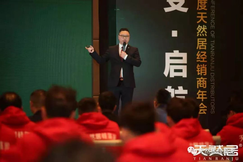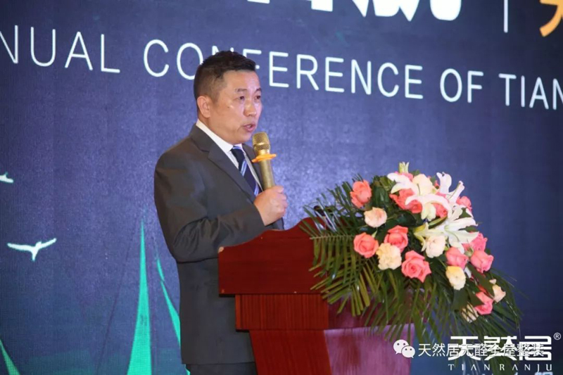 會議伊始,天然居董事長沈承忠先生發表致辭,對與會的嘉賓與家人們表示熱烈的歡迎和由衷的感謝。沈總表示在發展的8年間天然居作為家居建材行業一線品牌,一直響應國家環保號召,密切關注行業發展動態,關注消費者切實需求,堅持守護健康,為生命護航的經營理念,以客戶需求為導向,以”匠心做品質,良心做營銷,真心做服“的三心服務為核心,為消費者打造天然,時尚、無醛,健康之居。
