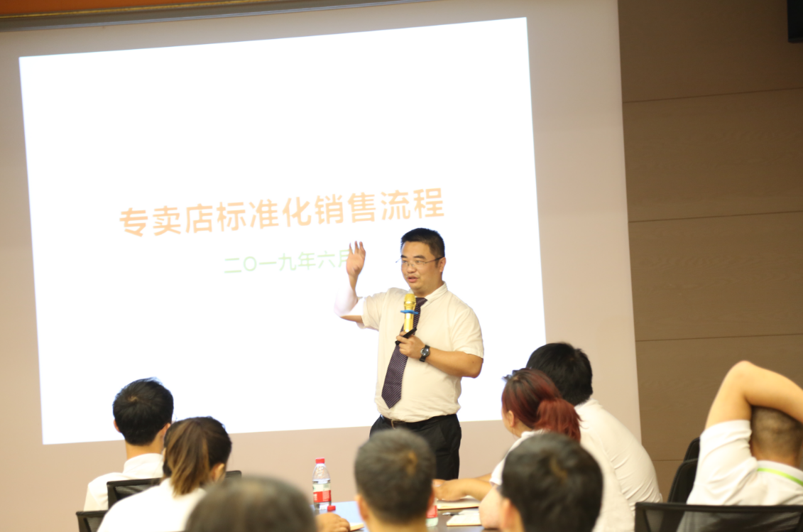 天然居市場營銷策劃經理王杰為精英們進行銷售流程培訓